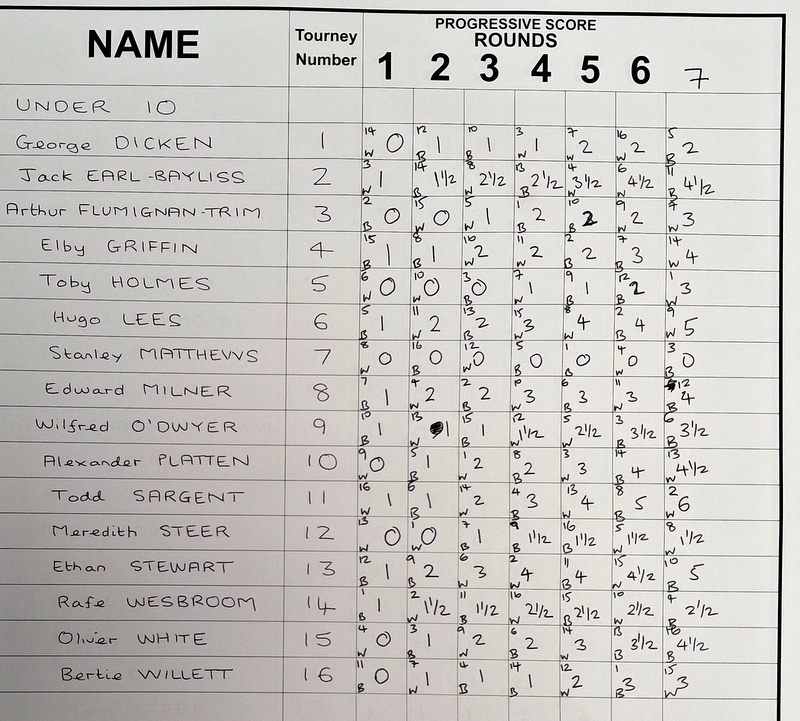 U12: 1st* George Wyatt 4½/5; 2nd* AD Pratt 4½/5; 3rd Sofia Daysh 4/5